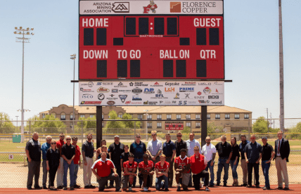 On May 24th, This generous donation came after AMA and Florence Copper heard about the need to replace the scoreboard that was originally installed in the 1970’s. The scoreboard, located on the football field, will serve football, soccer, unified sports, physical education students, and the FUSD community for years to come. “Florence Copper is proud to partner with the Arizona Mining Association to provide a new scoreboard to Florence High School,” said Stacy Gramazio, manager of communications and public affairs for Florence Copper. “We hope that this donation will be enjoyed by the students of Florence for many generations.”